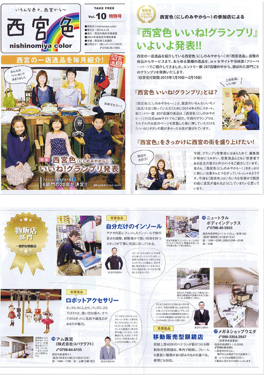 西宮色(カラー)Vol.10特別号に、「西宮色いいね!グランプリ」物販部門を受賞した当店が紹介されました。